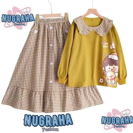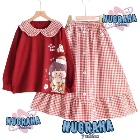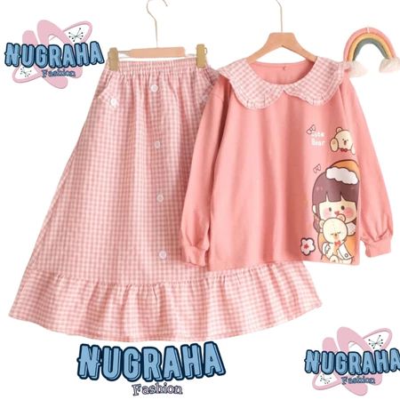 Setelan Rok Anak Sablon Terlaris Bahan Crinkle Mix Katun Usia 3-10 Tahun