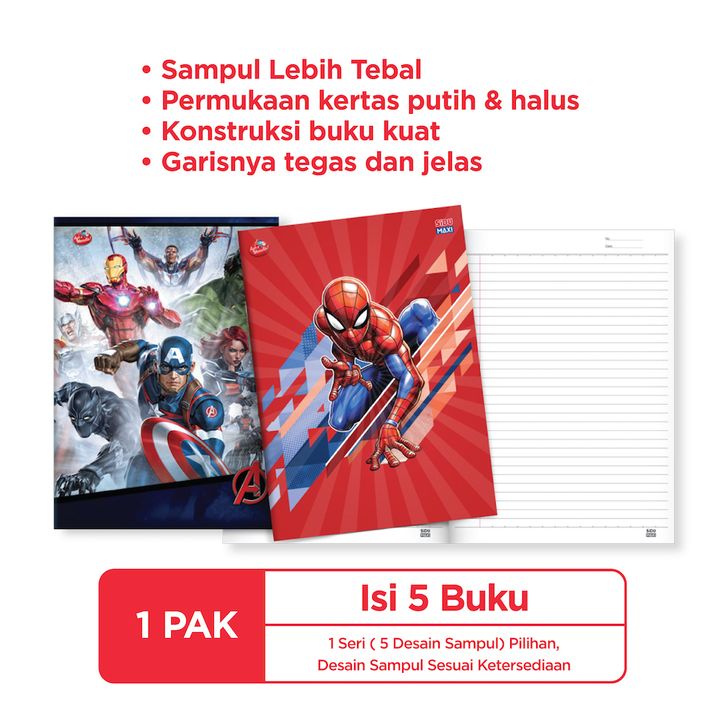 TERLARIS [2 pak] SiDU Maxi Buku Tulis Marvel 42 Lembar - 5 buku