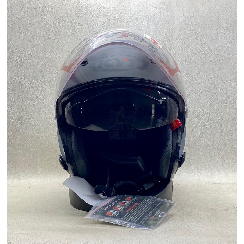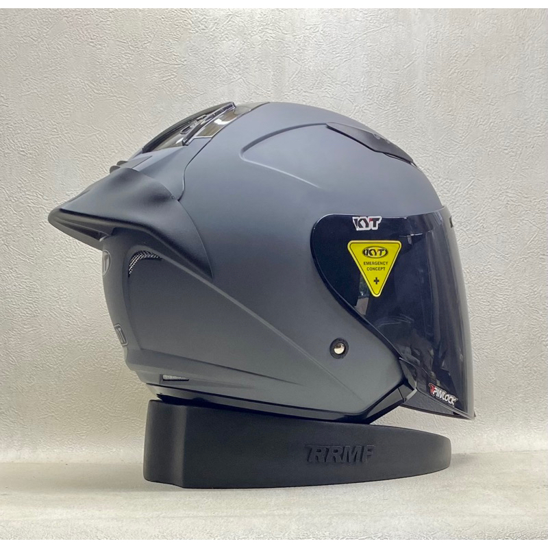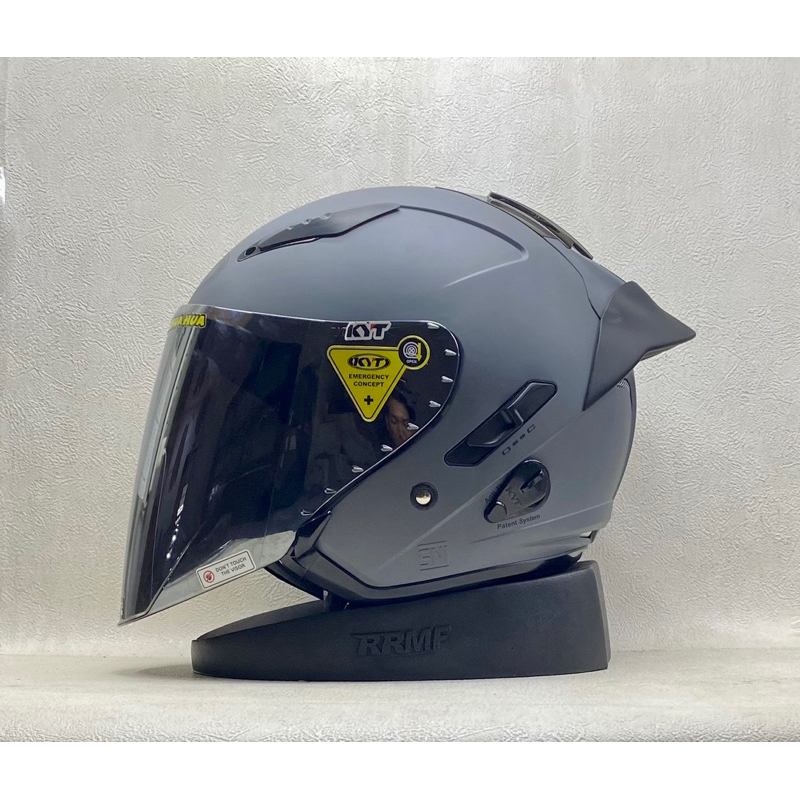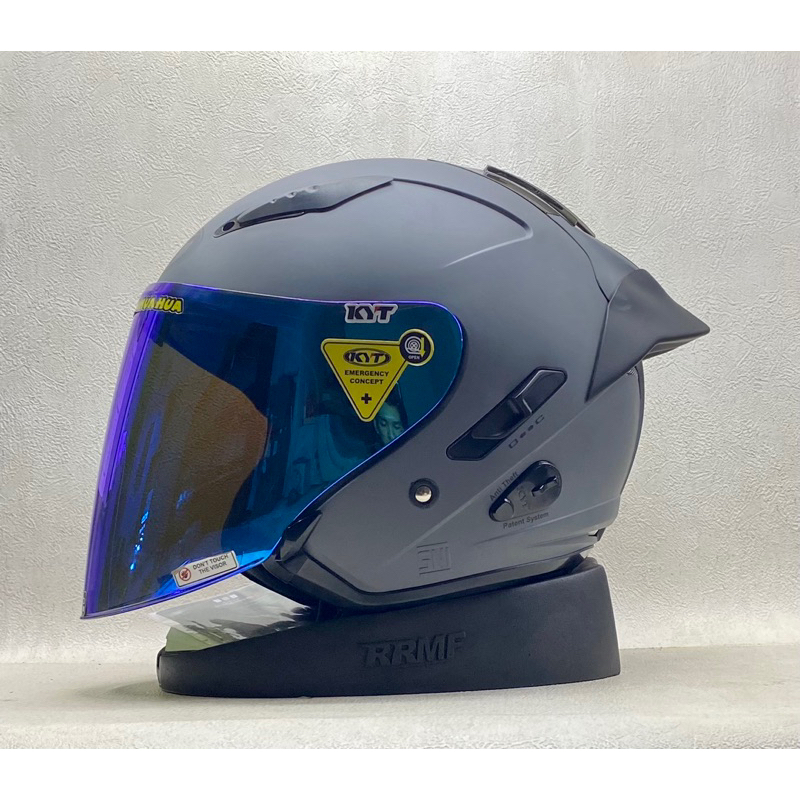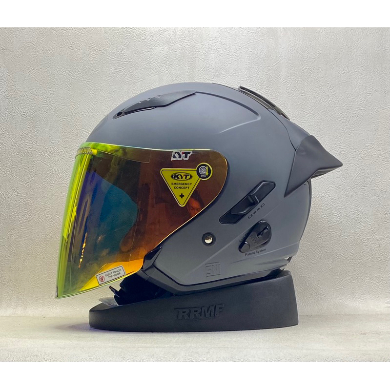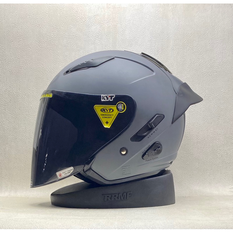 HELM KYT GALAXY FLAT R SOLID GORILA GREY DOF - PAKET GANTENG VISOR IRIDIUM I SPOILER 2D I KYT HELM HALF FACE DOUBLE