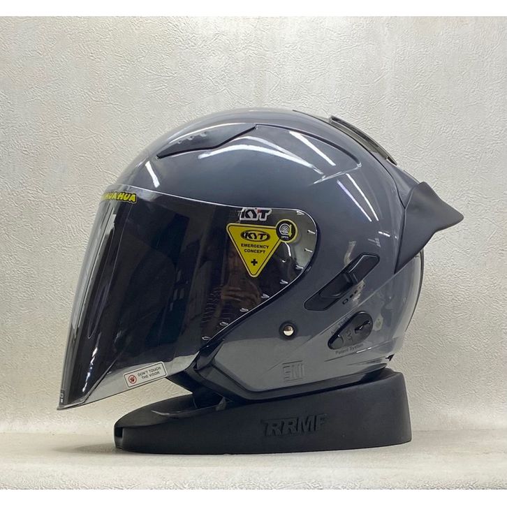 KYT HELM GALAXY SLIDE FLAT R | GORILA GREY GLOSSY | SOLID FLAT VISOR - SPOILER 2D 7 3D - HELM HALF FACE TERMURAH