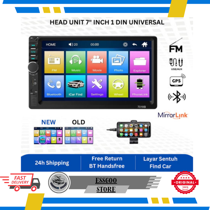 Headunit 7 Inci 1DIN 7018B Car Radio Player Mirrorlink Carplay Bluetooth Mp5