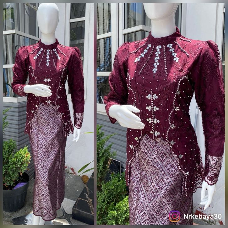 Juwita Kebaya Modern Terbaru Wanita Brukat Payet Bunga-Bunga Setelan Kebaya Wisuda Pesta Kondangan Lamaran Elegan