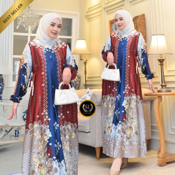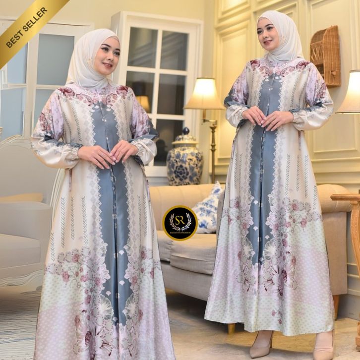 Baju Gamis Armani Silk Premium Wanita Muslim Model Elegan Dress Bunsui Jumbo LD 130cm Seragaman Best Seller Termurah