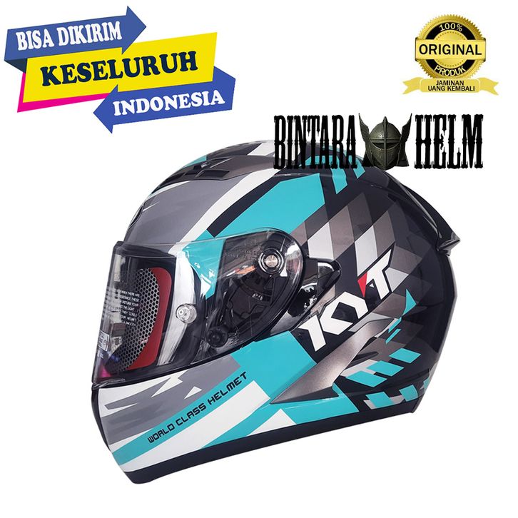 KYT Helm FALCON /FLOW BLACK AQUA BLUE Kyt falcon DOUBLE VISOR ORIGINAL Helmet terlaris