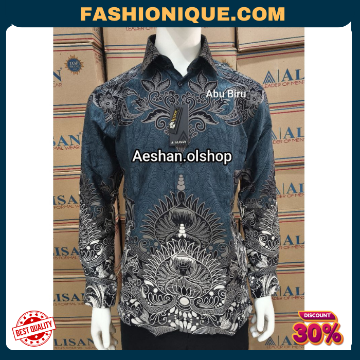 [Star] Alisan Kemeja Batik Printing SLIMFIT Panjang Kemko Pria Original BERKUALITAS