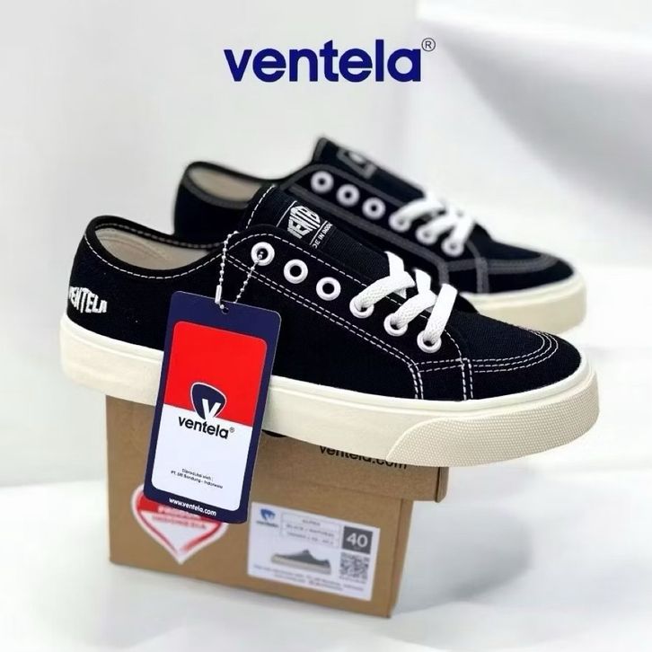[Mall] VENTELA OFFICIAL STORE - Sepatu Ventela Original Pria Wanita Alpha Black Natural Sepatu Sneakers Casual Murah