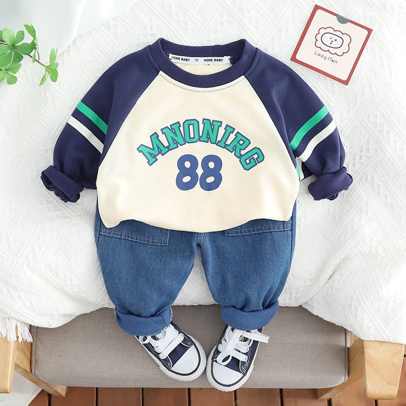 SETELAN PREMIUM ANAK MOTIF ANGKA 88 / BAJU BAYI ALA KOREA USIA 6 BULAN 5 TAHUN / PAKAIAN UNISEX
