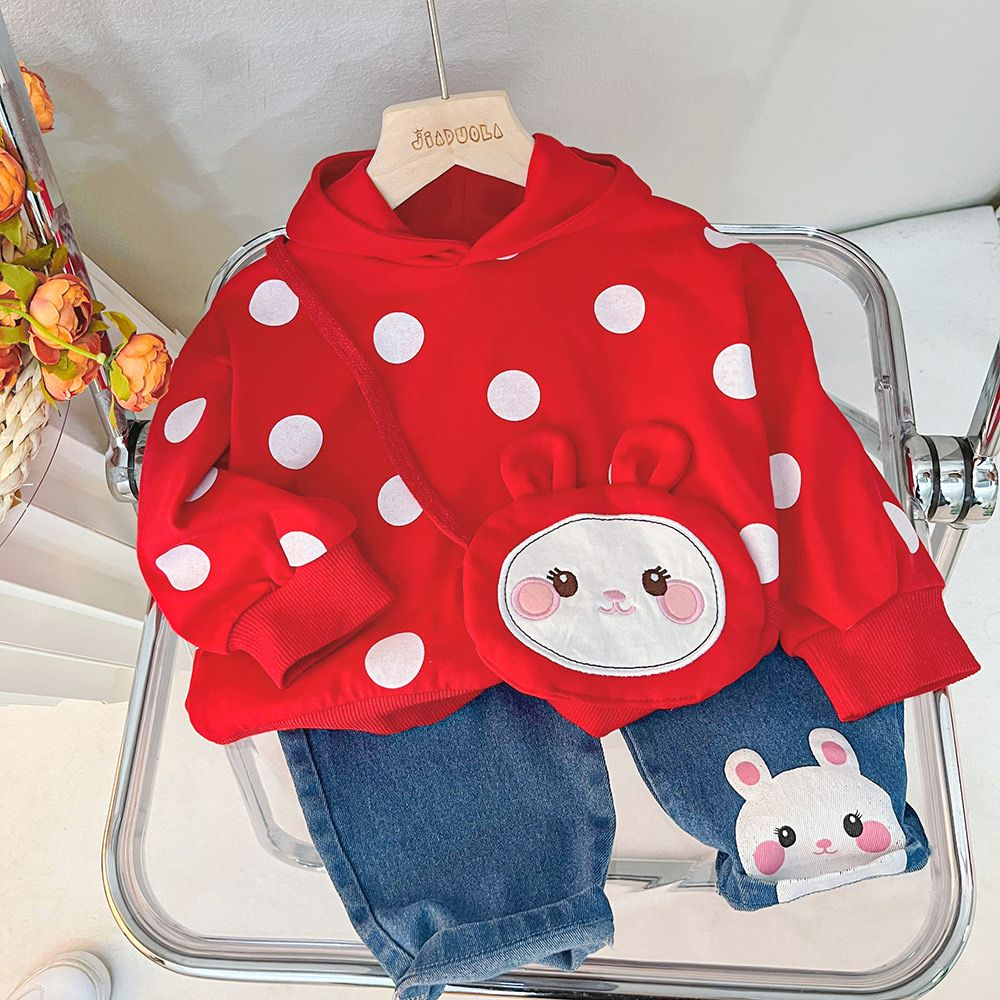 SETELAN ANAK PEREMPUAN LENGAN PANJANG MOTIF POLKADOT RABBIT WARNA MERAH ALA KOREA USIA 6 BULAN 5 TAHUN PREMIUM