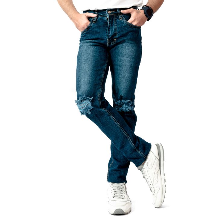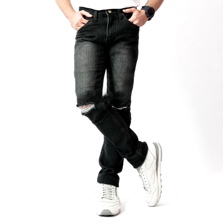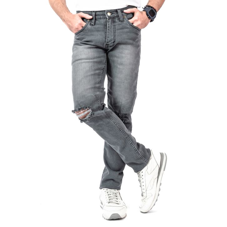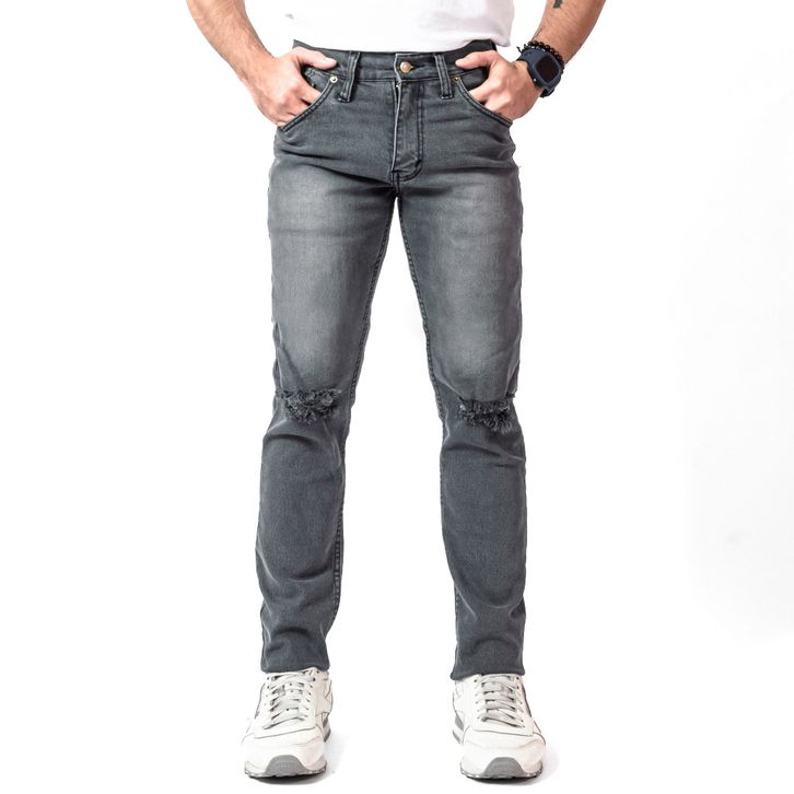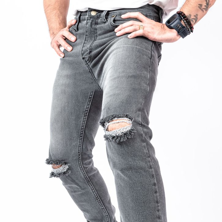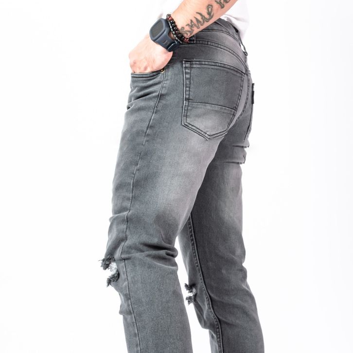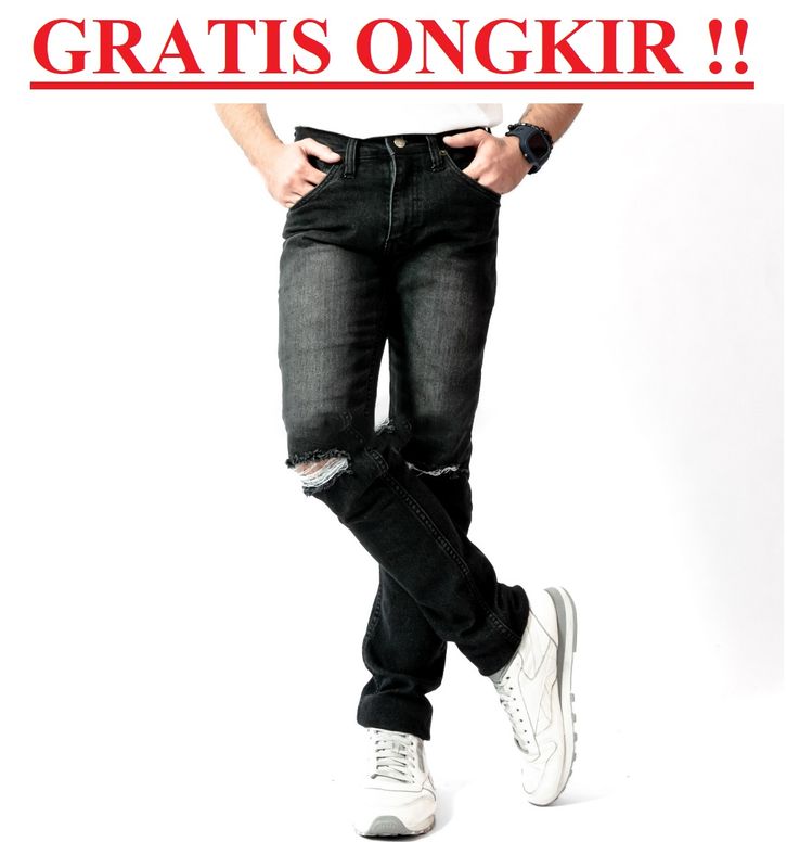 Celana Sobek Pria Black Jazz Ripped Jeans Robek Lutut Soft Denim Strech Skinny Fit / Grey Retro Ripped