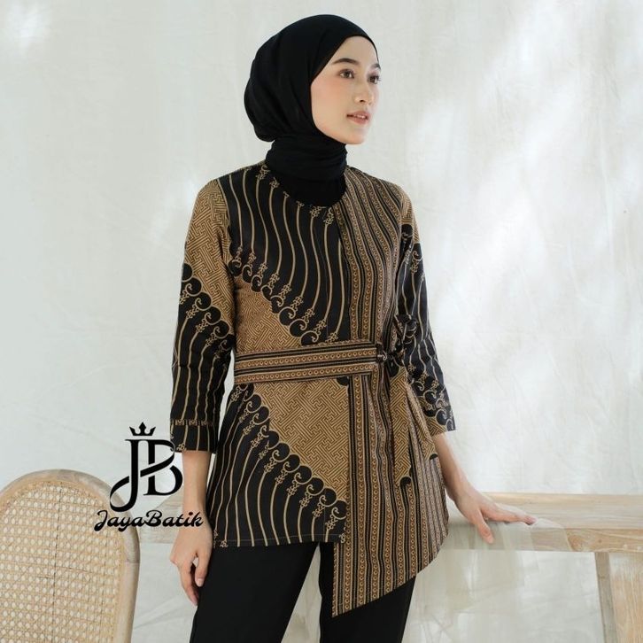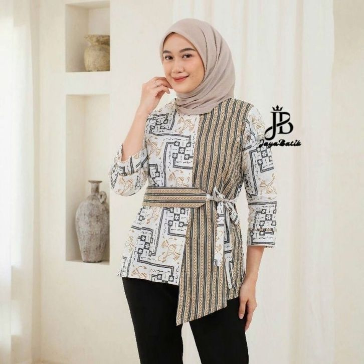 BAJU ATASAN WANITA BATIK MODERN MONALISA GENES M,L,XL BLOUSE BATIK TRADISIONAL KOMBINASI TERBARU