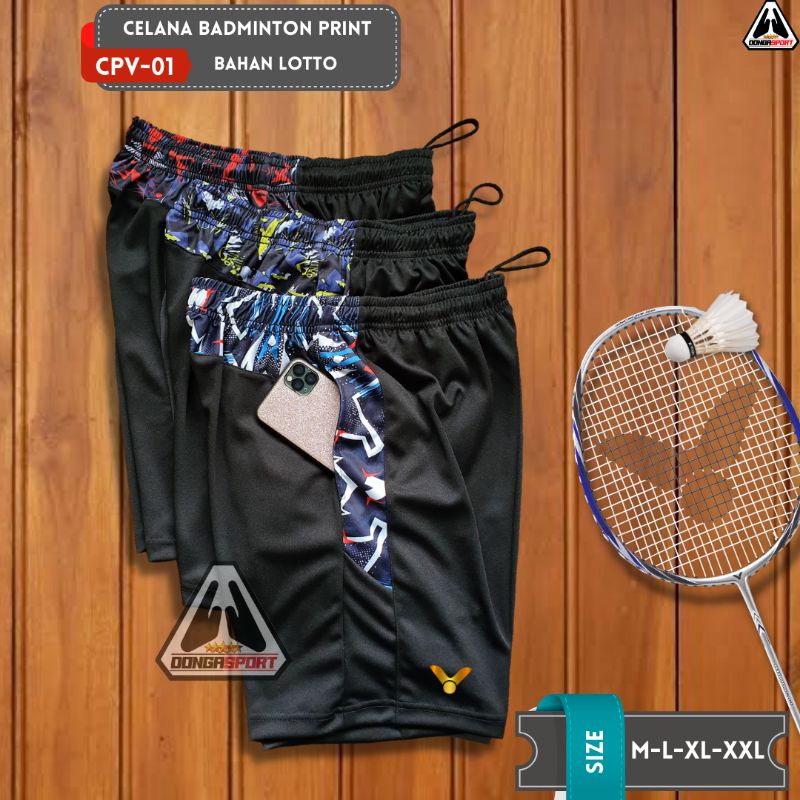 CELANA BADMINTON PRINT KANTONG KANAN-KIRI DEWASA BAHAN LOTTO CELANA BADMINTON PENDEK CELANA
