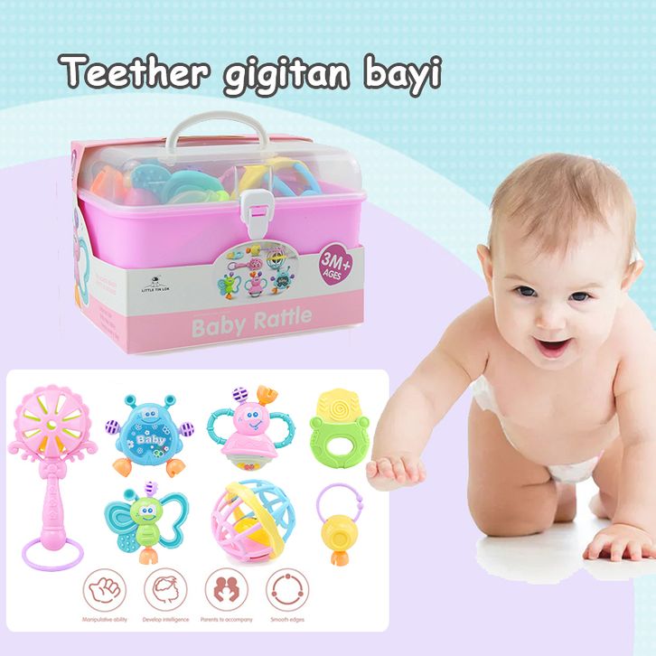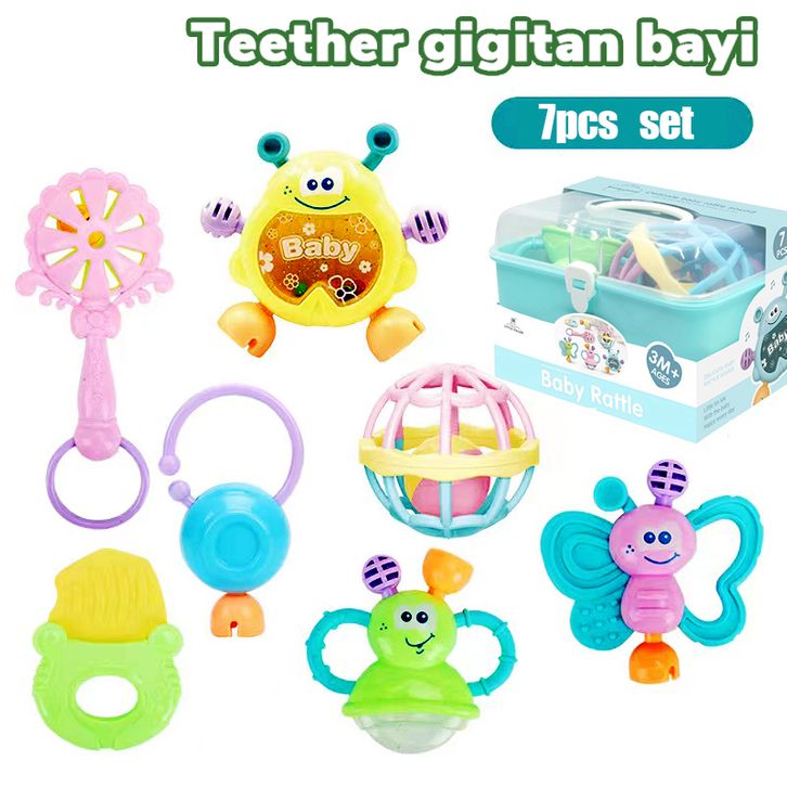 Teether bayi gigitan bayi 7PCS bpa free Mainan Kerincingan Bayi 0-12 Bulan Pendidikan Awal Teether Bayi Set Rattle Bayi
