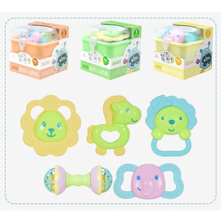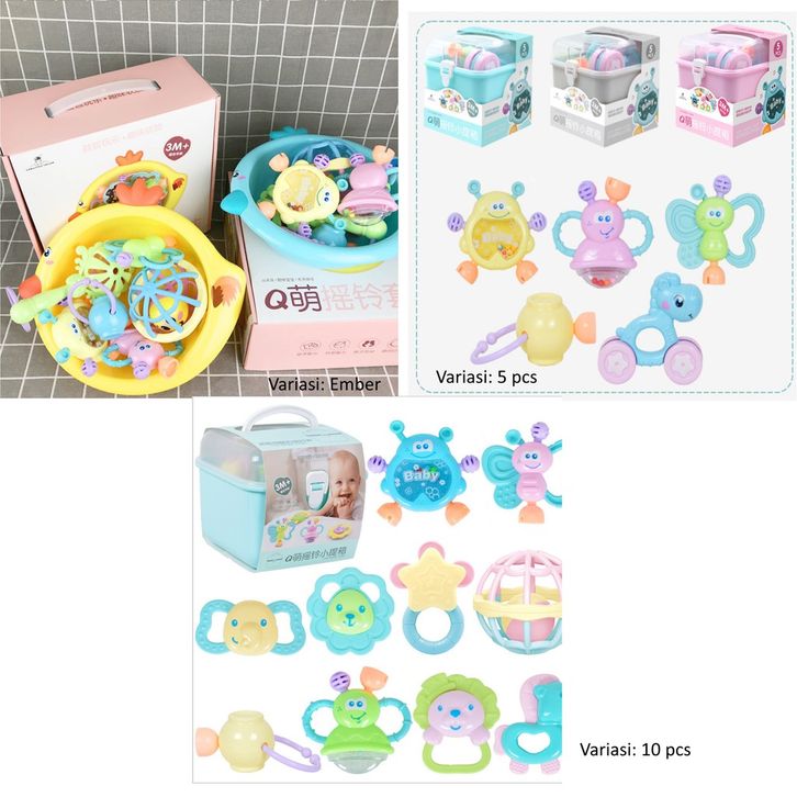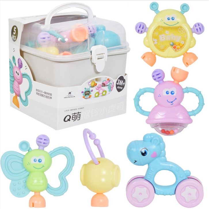 Mainan bayi, Mainan lonceng gigitan bayi, Rattle Teether bayi dengan kontainer 10 pcs set