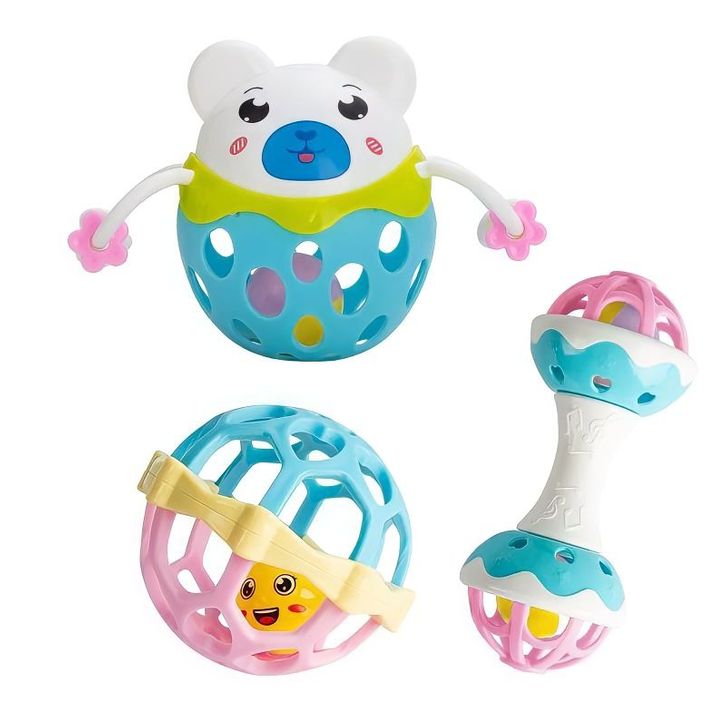 Mainan krincingan bayi warna Pink Biru | Rattle teether bayi | kerincingan
