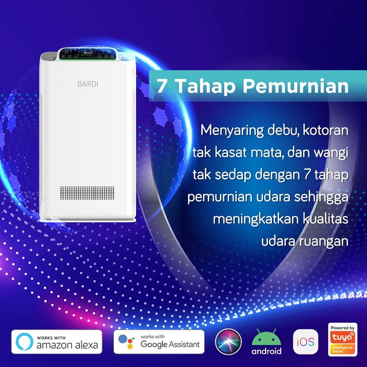 BARDI Smart Air Purifier with HEPA Filter UV Sterilizer Ionizer IoT Home Automation + Add On Filter - Smart Home Tools