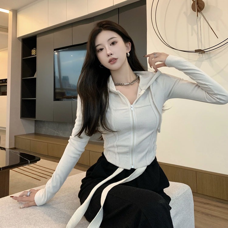 [FLASH SALE] BARU MAUREEN KNIT JACKET WANITA - KOREAN HOODIE ZIPPER CROP (S M L )