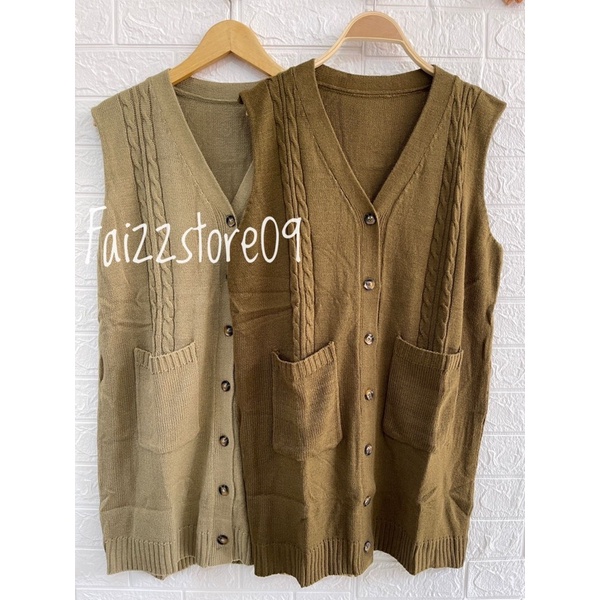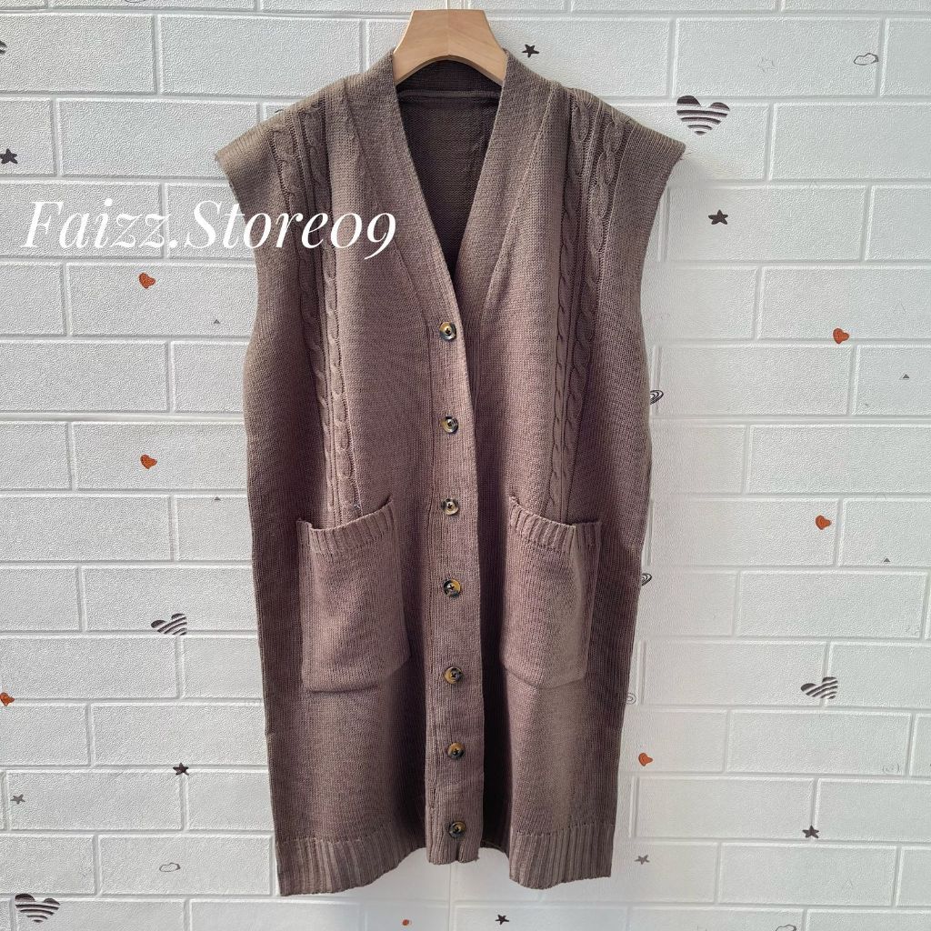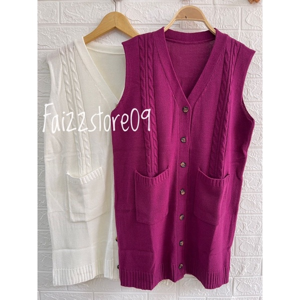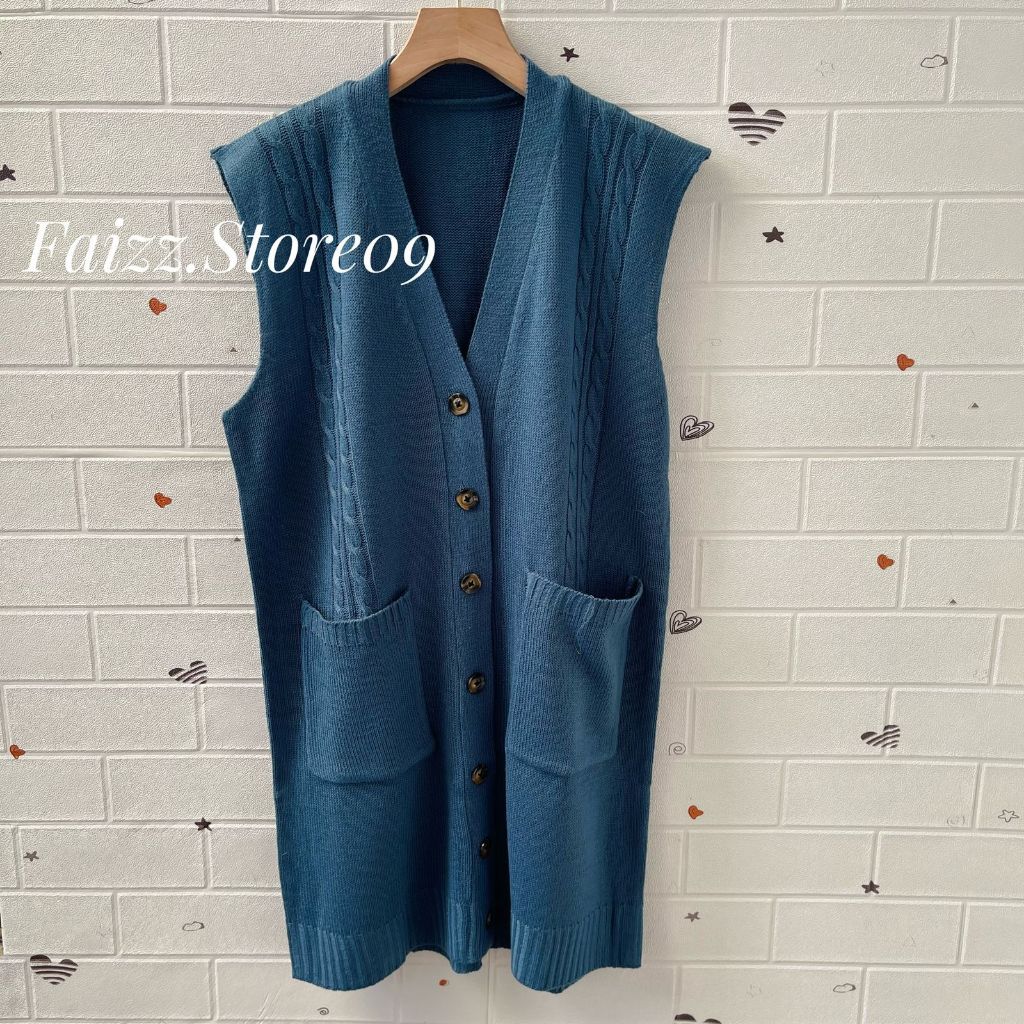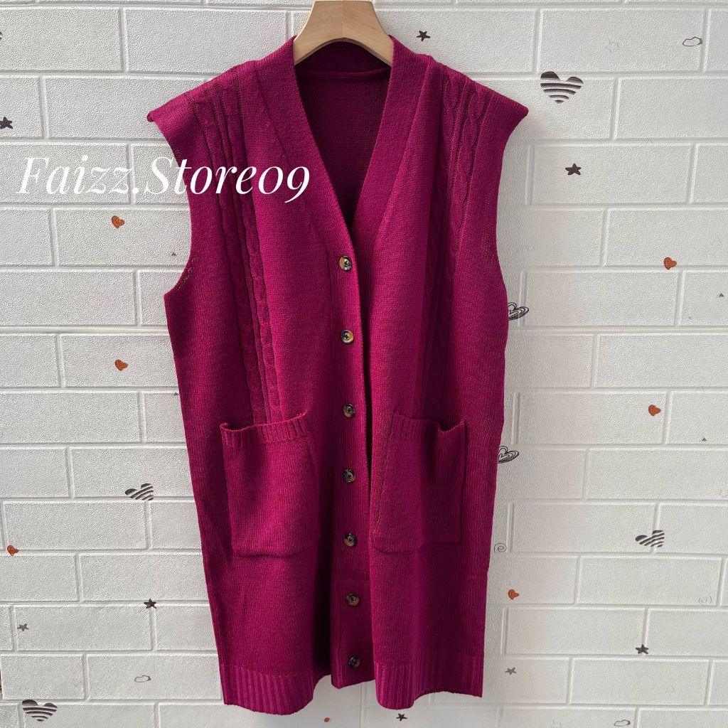 [FLASH SALE] LONG VEST RAJUT WANITA KANCING 7 MOTIF CABLE / OUTER ROMPI PANJANG OVERSIZE PREMIUM