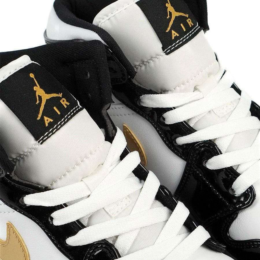 Nike Air Jordan 1 Mid Patent Black White Gold Black Gold Authentic