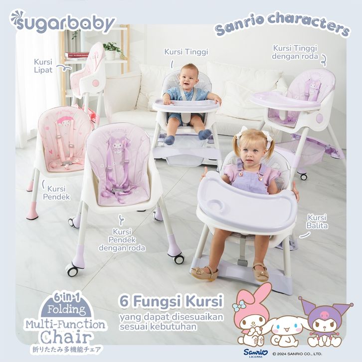 Kursi Bayi/Kursi Anak/Kursi Makan Anak/Kursi MPASI/Baby/Sugar Baby 6-in-1 Folding Multi-Function Chair Sanrio Collection