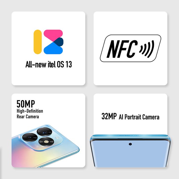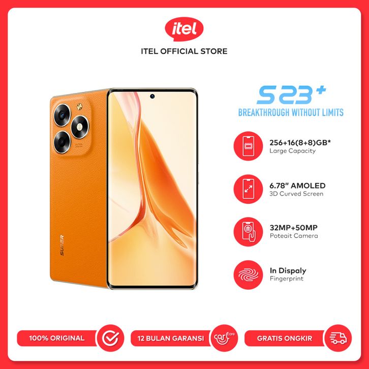 Itel Official Store HP Tanpa DP S23+ 256GB+16GB(8+8GB) NFC Unisoc Tiger T616 5000 mAh 18W 6.78 inches GARANSI RESMI