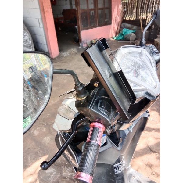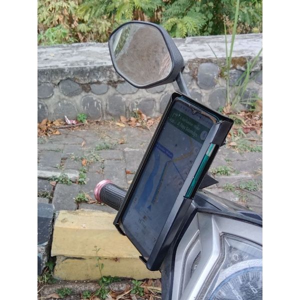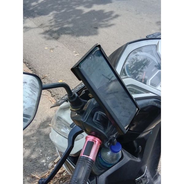 holder hp motor besi handphone spion stang gojek grab maxim gps masp di lengkapi penutup atas