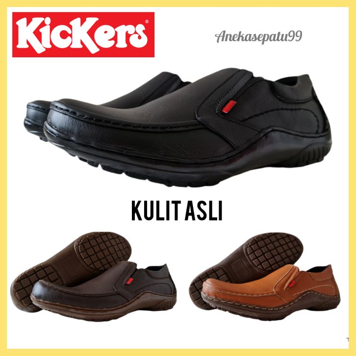 SEPATU PANTOPEL PRIA KICKERS SLIP ON DI JAMIN KULIT ASLI / SEPATU PANTOFEL COWOK FORMAL / SEPATU KERJA KANTOR RESMI LAKI