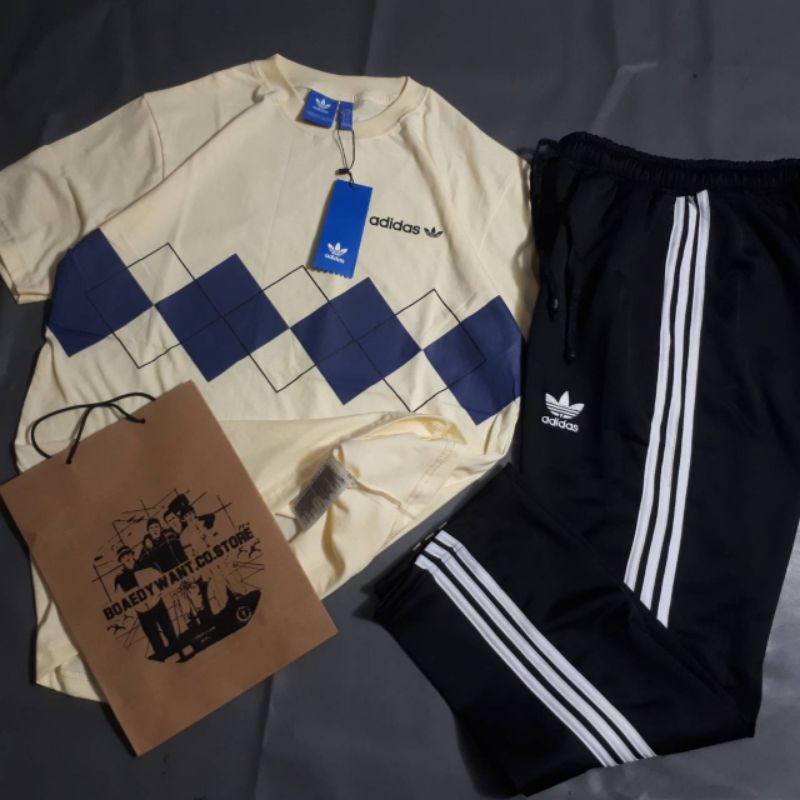KAOS TSHIRT ADIDAS ARGYLE & TRACK PANTS ADIDAS 1 SET