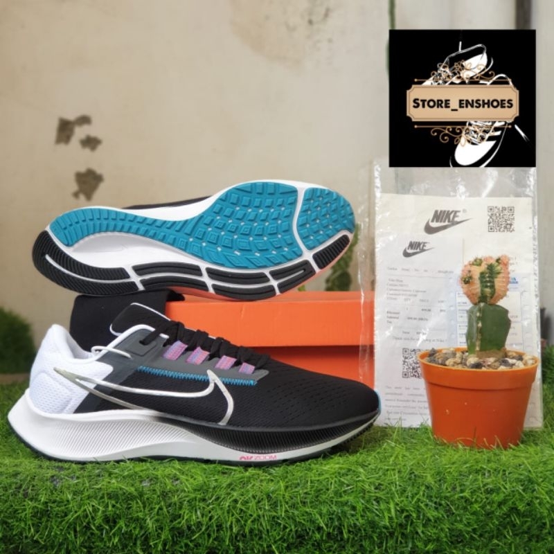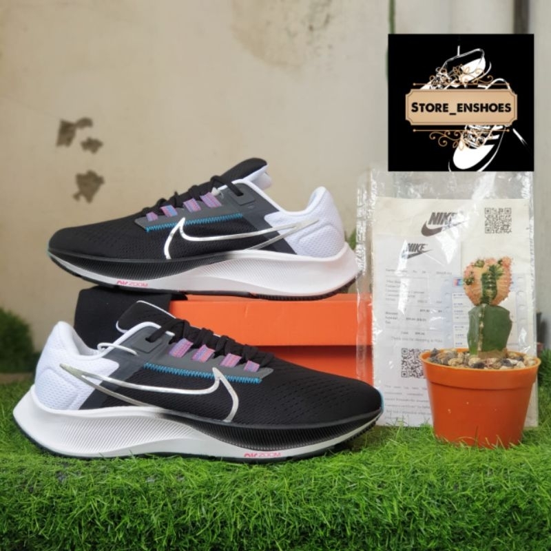 SEPATU LARI PRIA NK ZOOM PEGASUS 38 WHITE NAVY BLUE PREMIUM QUALITY