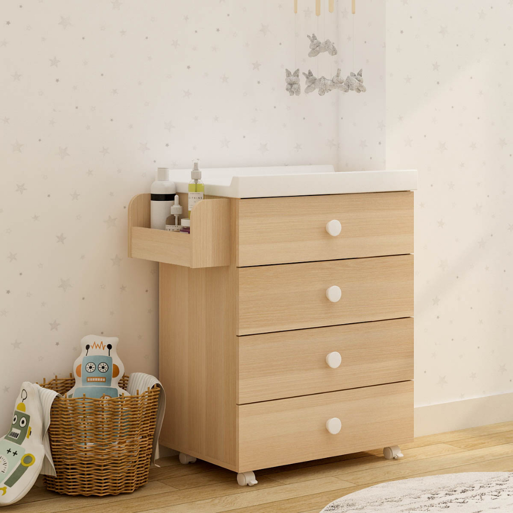 [Star] Meja Nakas Minimalis Kayu dengan 4 Laci Serbaguna Modern Meja Samping Tempat Tidur