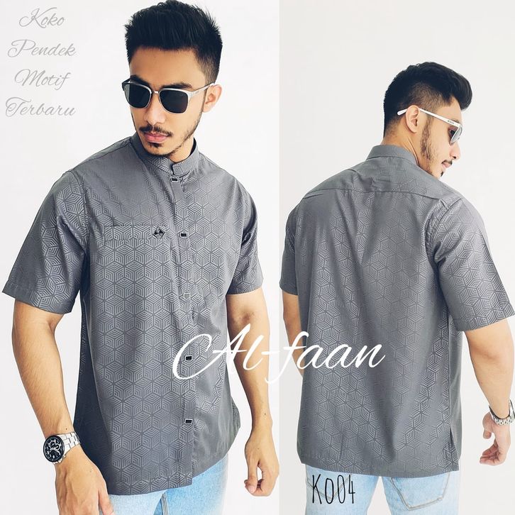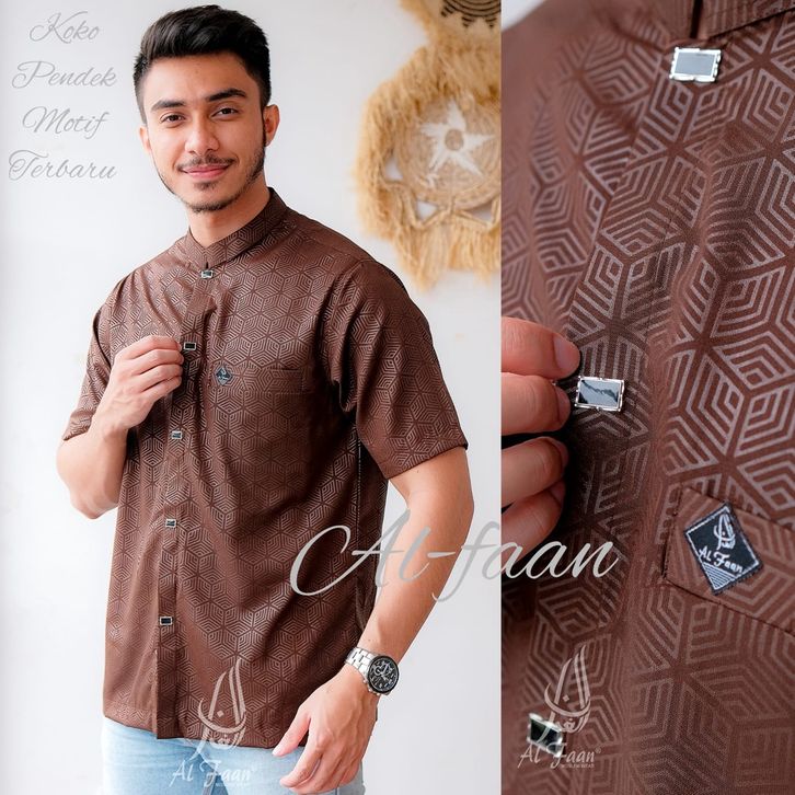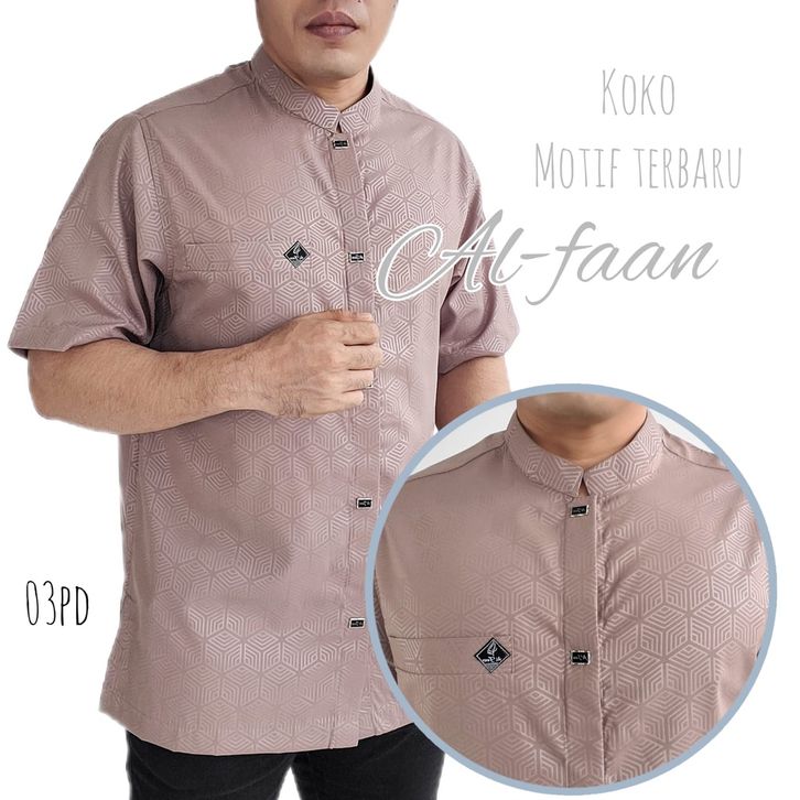 Baju koko lengan pendek kemko kurta jasko busana muslim atasan pria koko pria motif embos ALDI SERIES