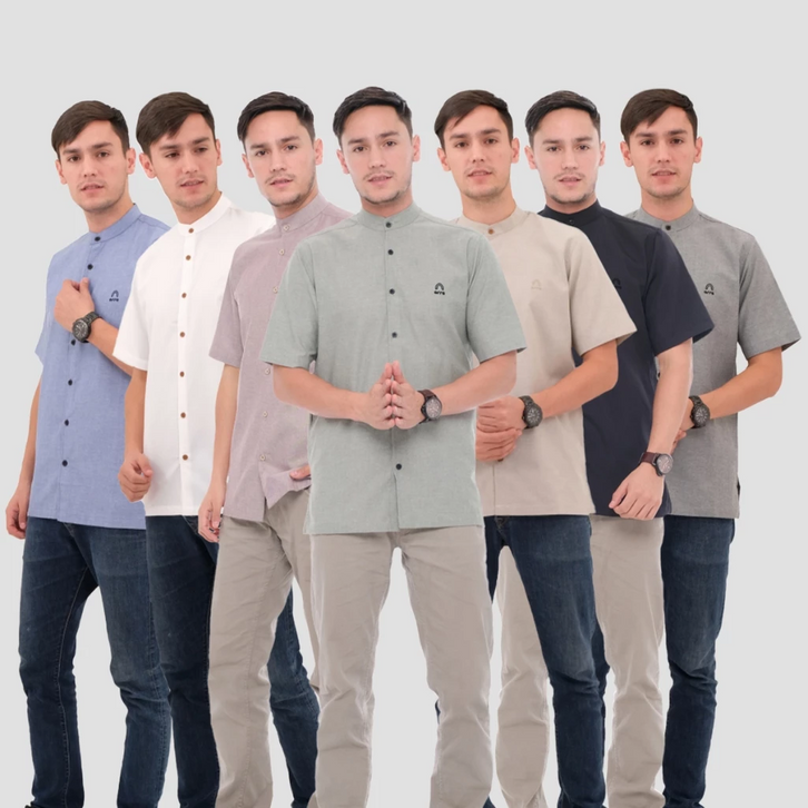 Baju Kemeja Koko Pria Dewasa Lengan Pendek Bahan Oxford Denim Warna Khaki Abu Putihu Soft Series Daud Original Arra Bus