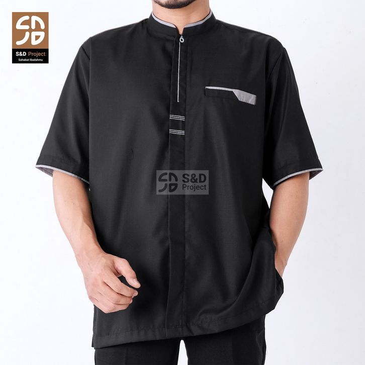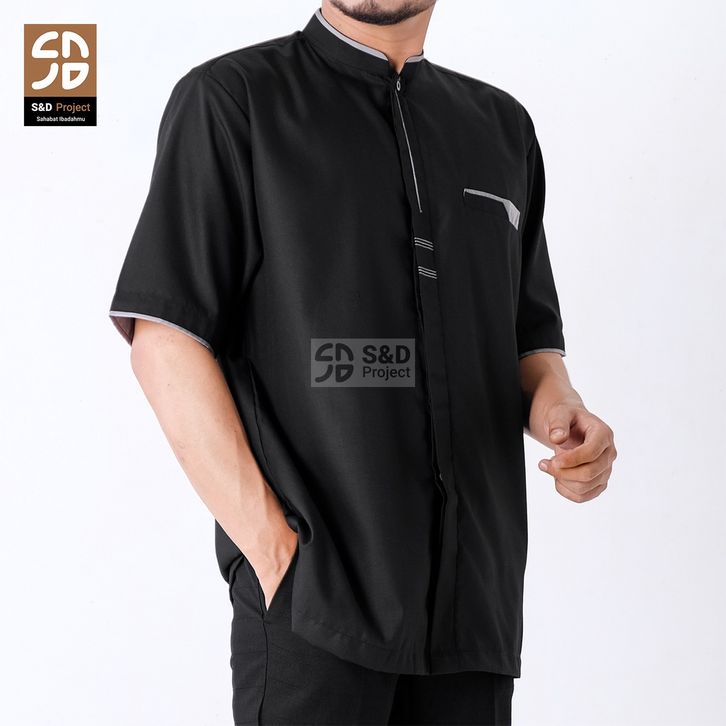 Baju Koko Katun Toyobo Polos Lengan Pendek Ukuran M L XL XXL 3XL 4XL Dewasa Remaja Anak Tanggung - Hitam TERLARIS