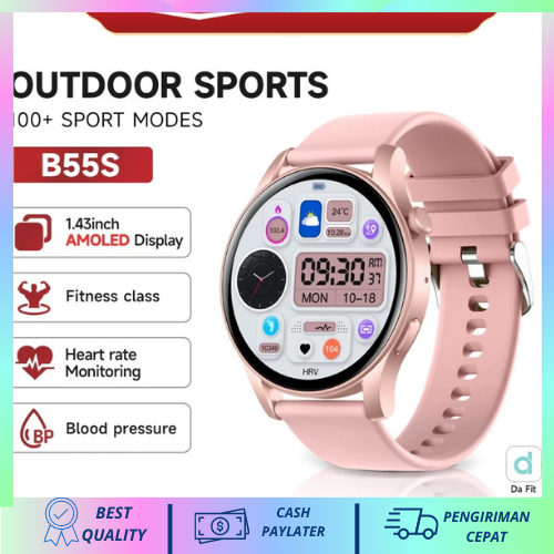 Jam tangan smartwach original Skmei B55S Smartwatch Support Strava 1.43inci AMOLED Full Touch Screen IP67 Waterproof Spo
