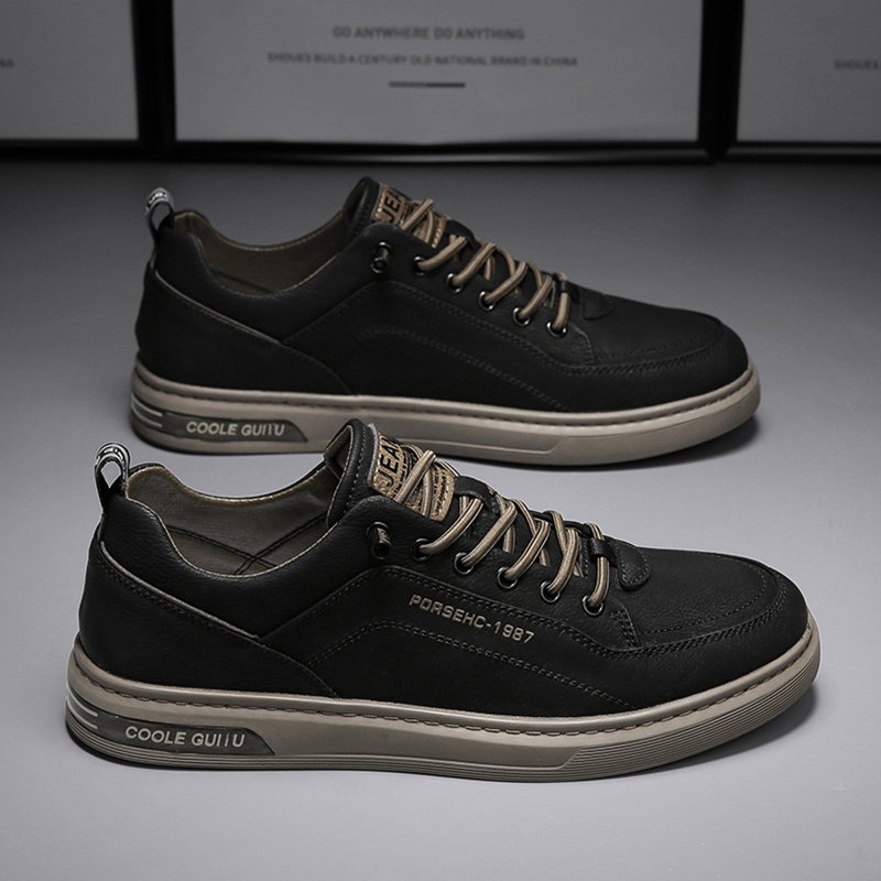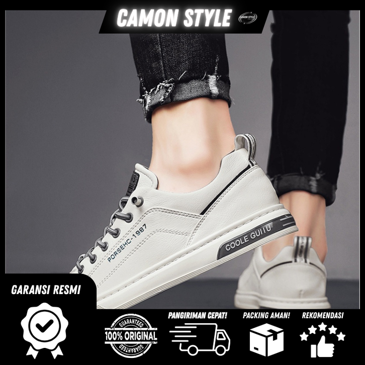 Leedoo Sepatu Pria Formal Sneakers Original Muda Kekinian Tali Hitam Kulit Sepatu Pantofel Shoes Putih Natural MC421
