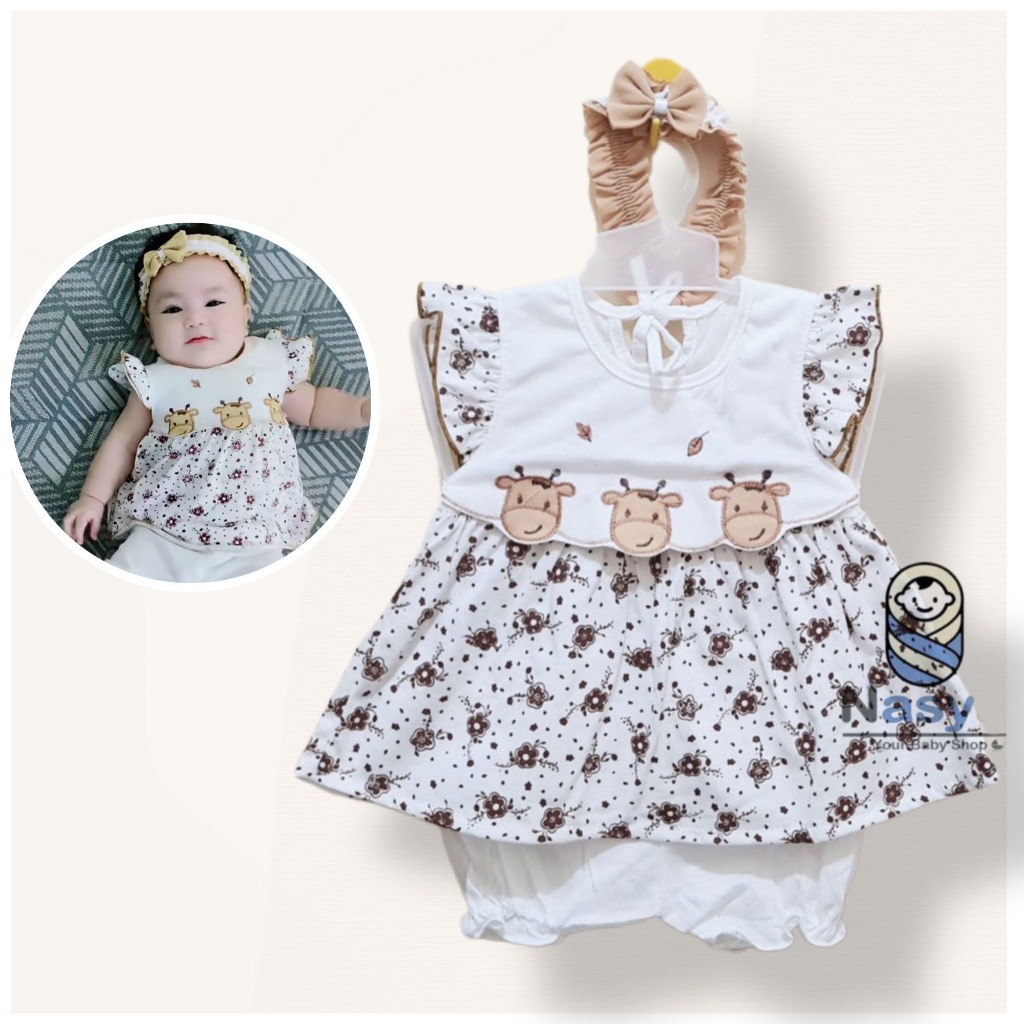 [P-034] BAJU BAYI / DRESS BAYI PEREMPUAN 0-6 BULAN MOTIF KOMBINASI (BONUS BANDANA)