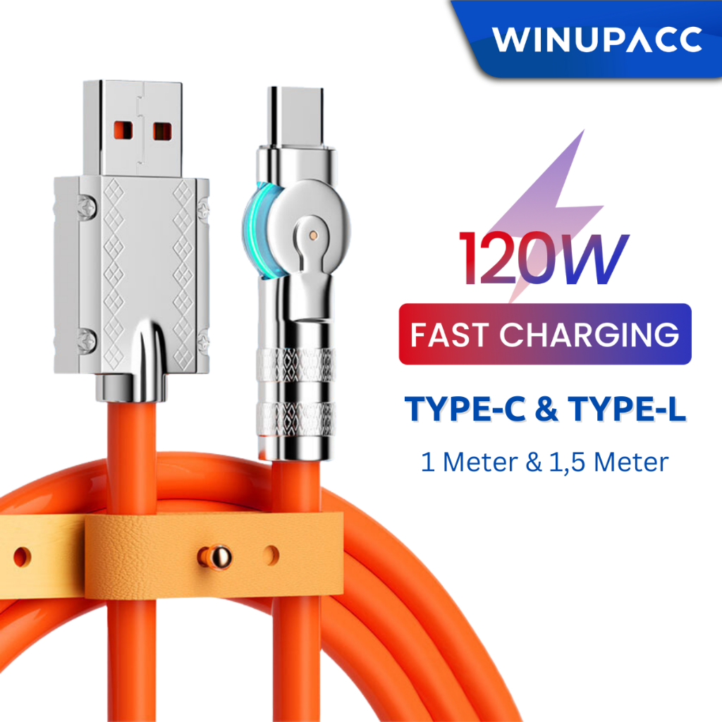 WINUP KABEL DATA SUPER FAST CHARGING MODEL PUTAR 1METER/1,5 METER/ROTASI 120W 6A TYPE C/LIGHTNING IPHONE IOS USB ANDROID