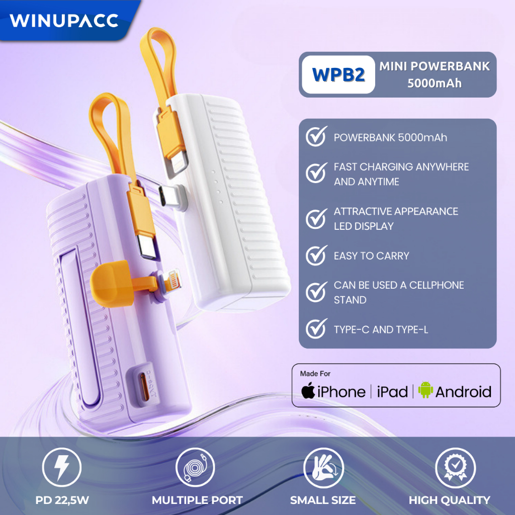 WINUP WPB2 POWERBANK 5000MAH PORTABLE MINI LIGHTNING IOS TYPE-C PD FAST CHARGING WITH LED DISPLAY TRAVEL SIZE