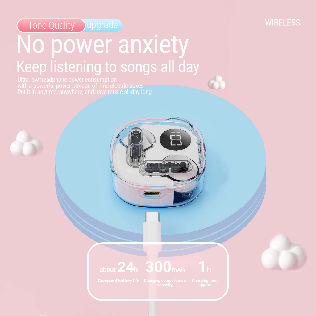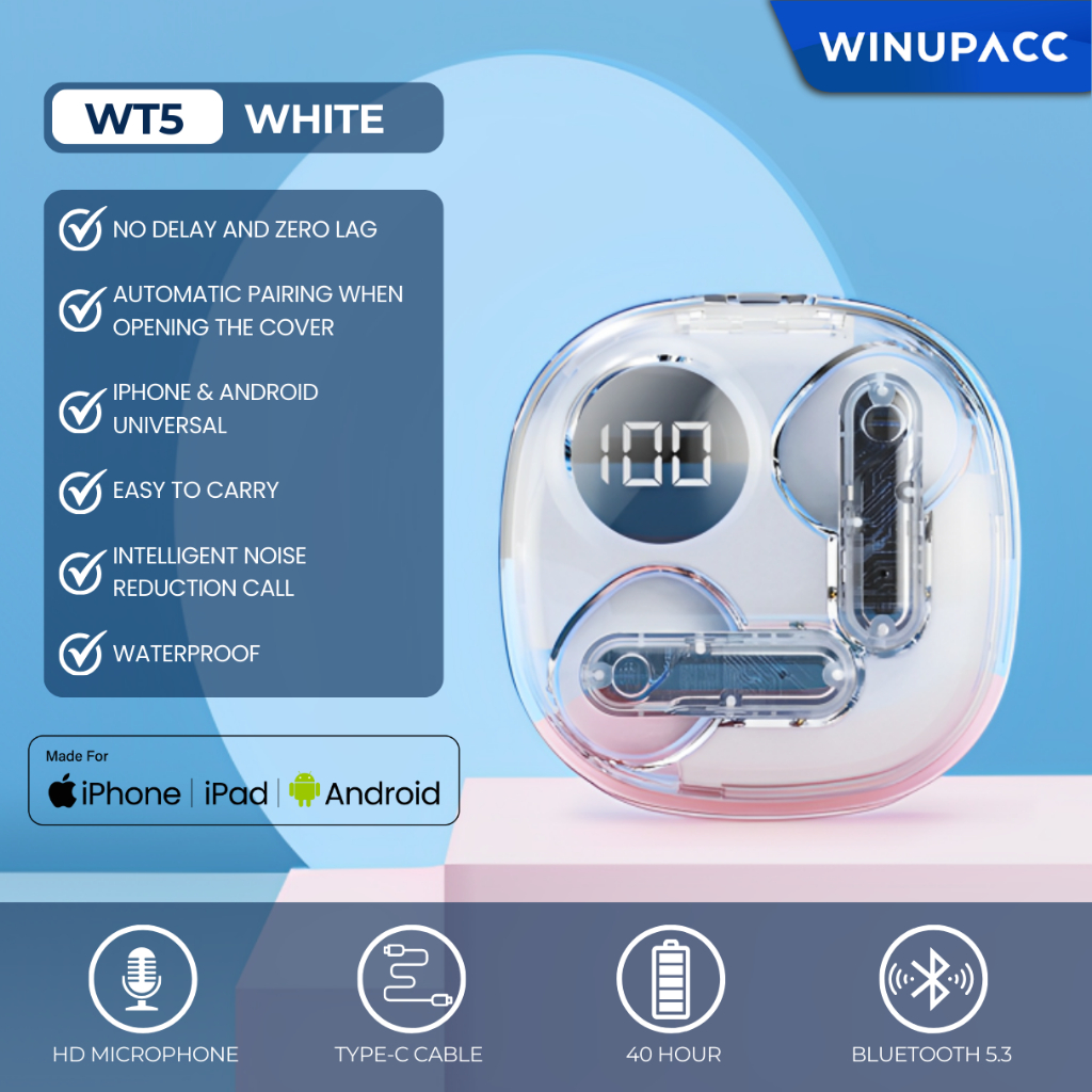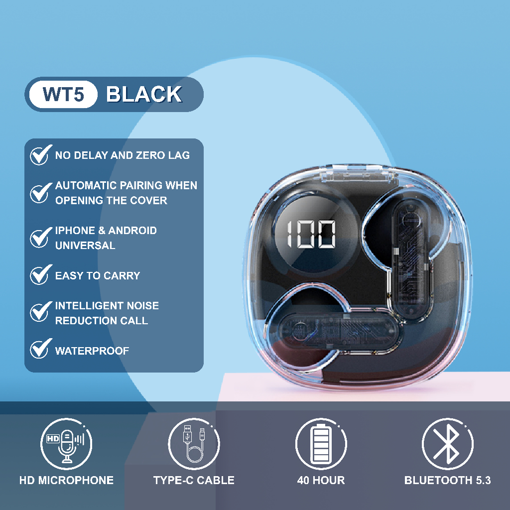 WELLUP WT5 TWS TRANSPARANT TRUE WIRELESS HEADSET BLUETOOTH EARPHONE EARBUDS LED DISPLAY FOR ANDROID IPHONE