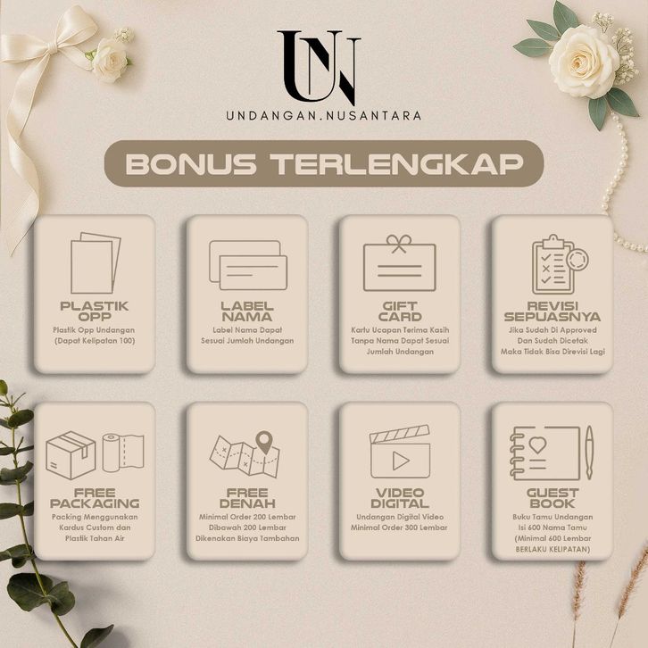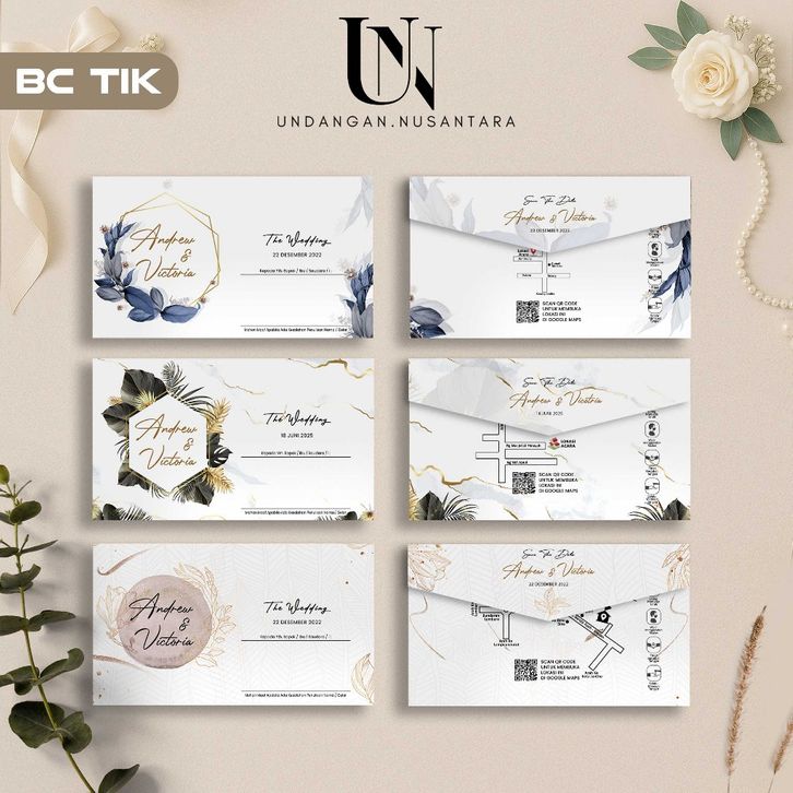 300 Pcs Undangan Pernikahan Brief Card Bentuk Semi Amplop Elegan Rustic