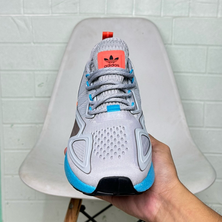 Sepatu Adidas Original Pria Sepatu Adidas ZX 2K Boost Grey Two Signal Cyan Sepatu Sneakers Pria Sepatu Adidas Original