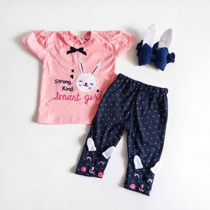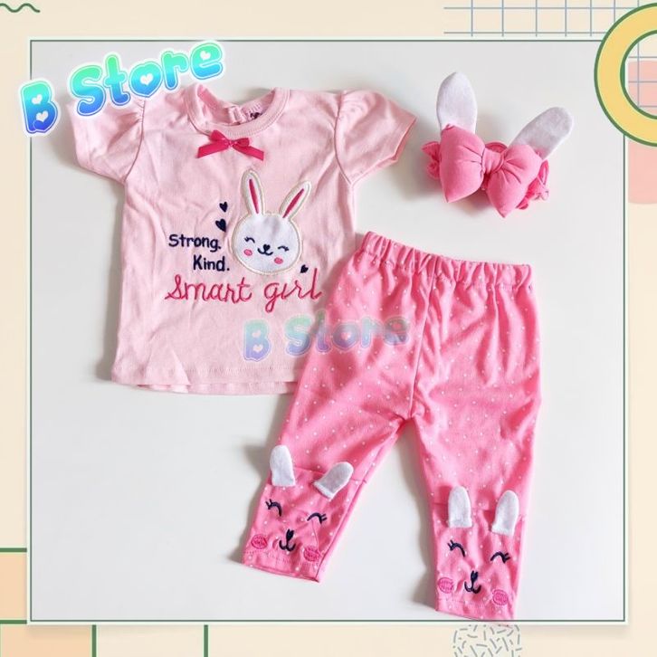 Baju Bayi Perempuan Setelan celana bunny 0-8 bulan baby girl lucu set bando pergi jalan fashion anak cewek legging