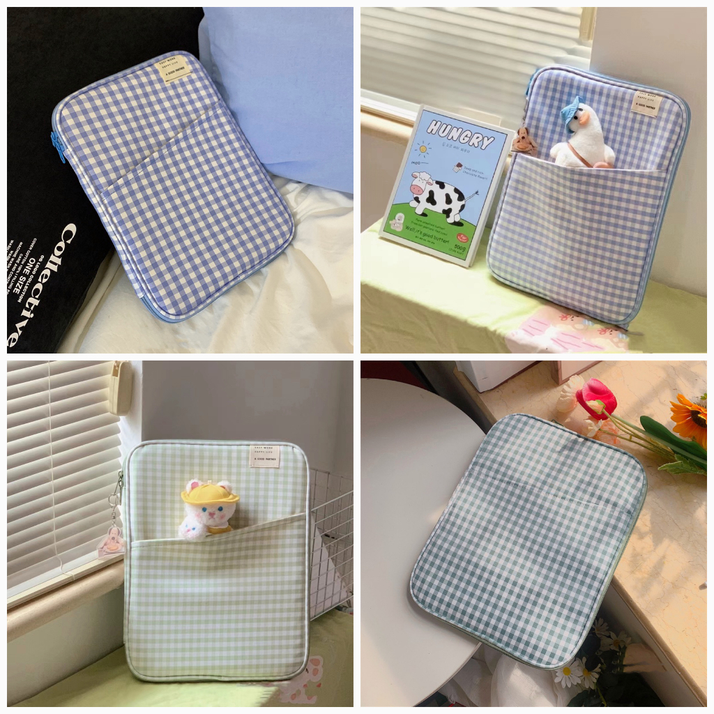 LAPTOP IPAD MAC TABLET PLAID TABLET LAPTOP SLEEVE 11” 12,9” 13” PELINDUNG SOFTCASE LUCU KOREAN LEMBUT LUCU