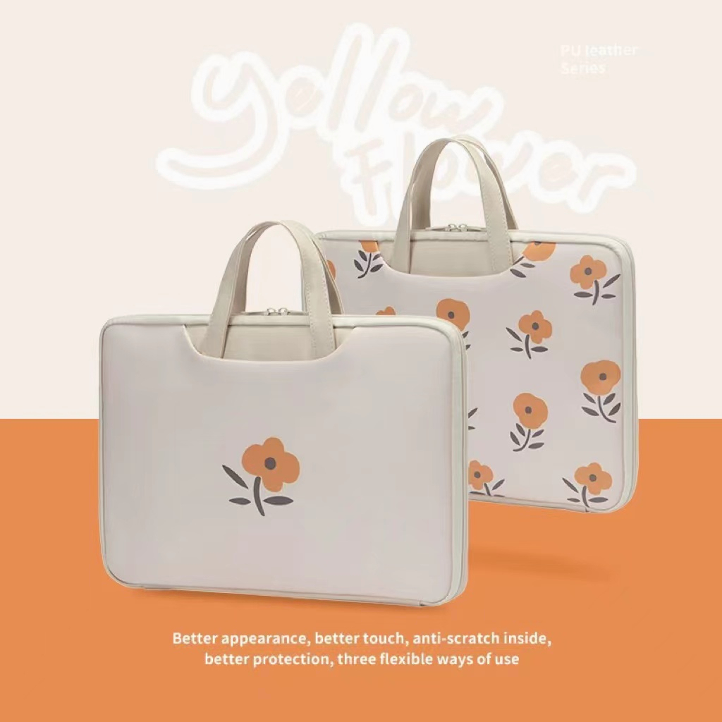 TAS LAPTOP ELEGAN BUNGA KUNING KANTOR LAPTOP DIAGONAL TAS WANITA 13-15.6 INCH LENGAN LAPTOP