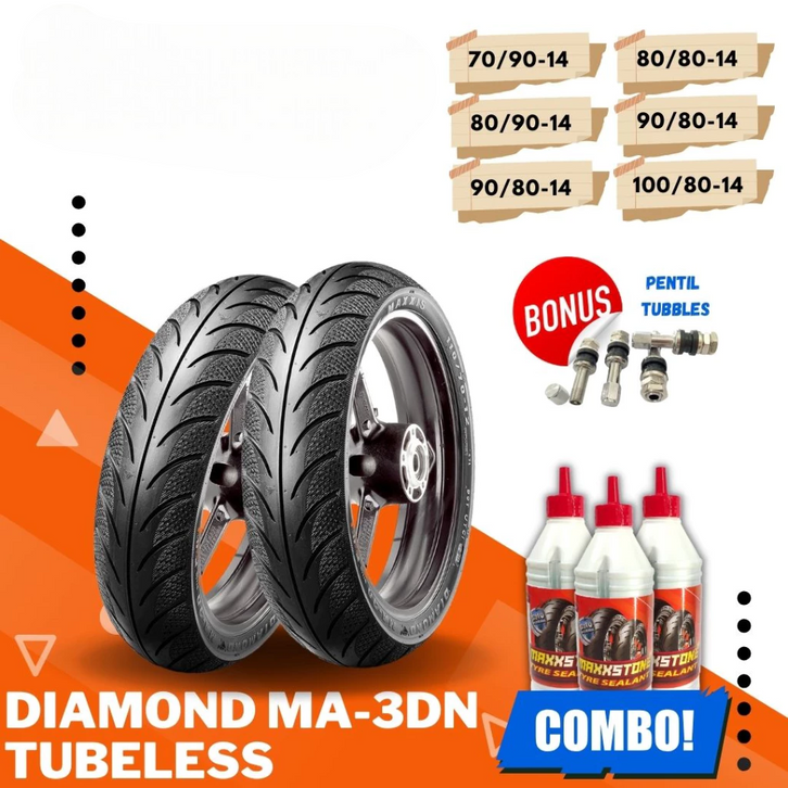 BAN MOTOR RING 14 TUBELESS MAXXIS DIAMOND MA-3DN TUBELESS 70/90 80/90 90/90 80/80 90/80 100/80 MATIC MIO BEAT VARIO BEST