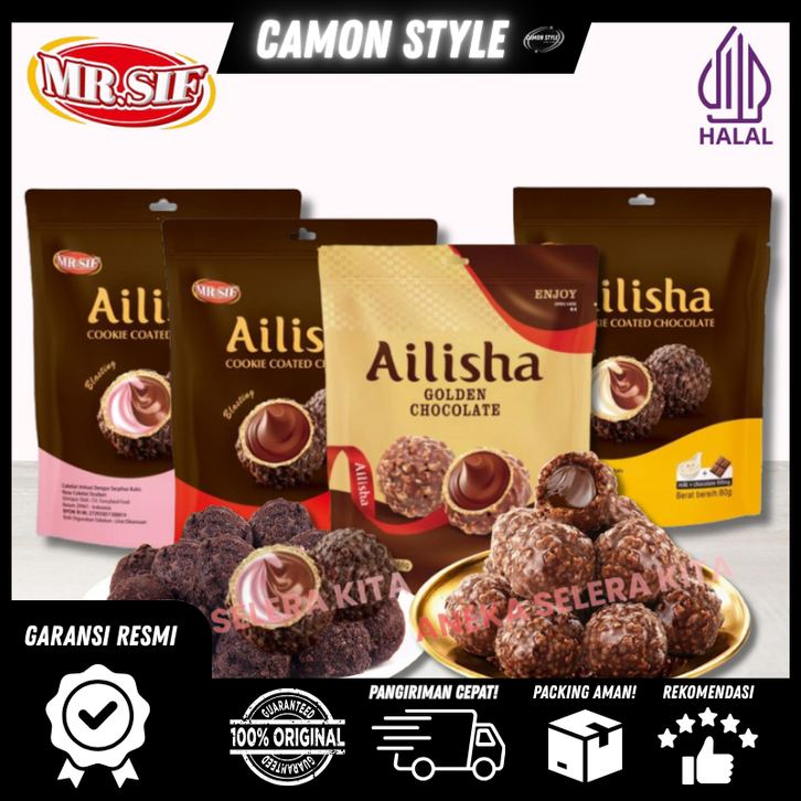 Ailisha Golden Chocolate & Ailisha Cookie Coated Chocolate / Coklat Cookies Ball Aneka Rasa