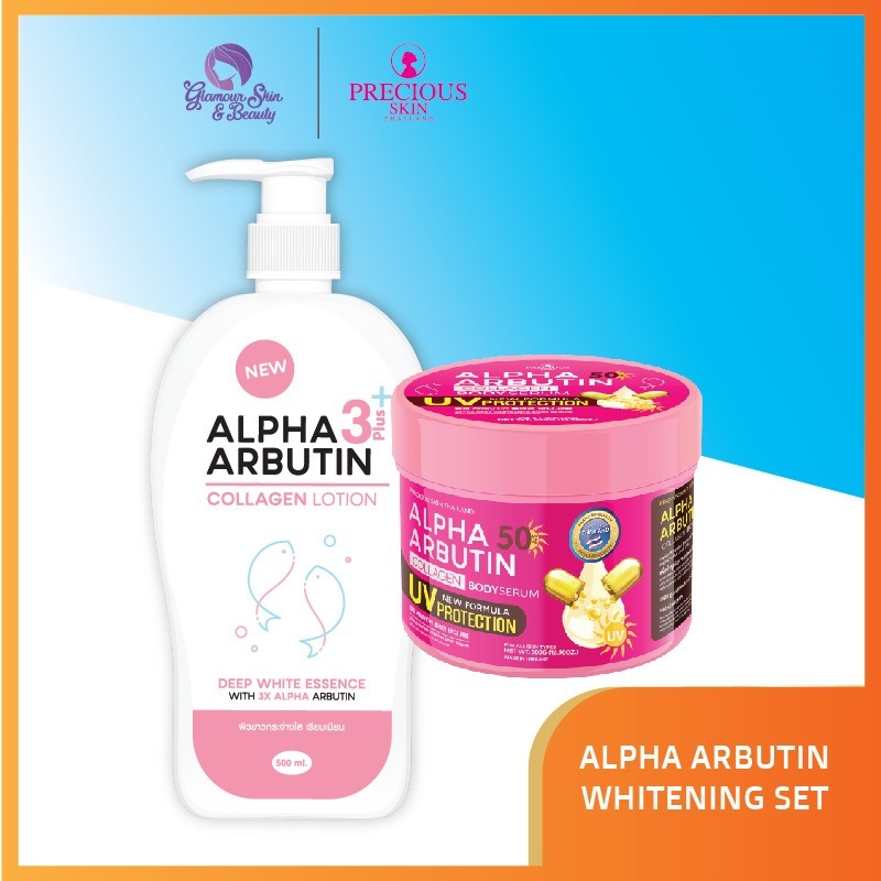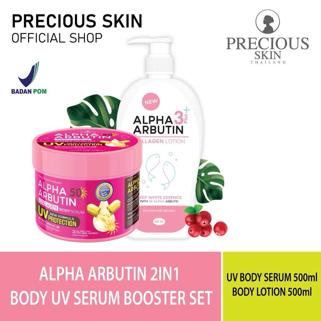 PROMO PRECIOUS SKIN THAILAND ALPHA ARBUTIN 3+++ 2 IN 1 WHITENING UV SERUM BODY BOOSTER SET / LOTION / SERUM BADAN A141