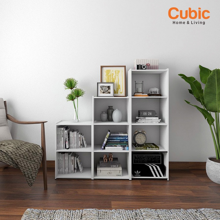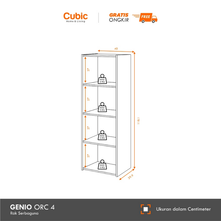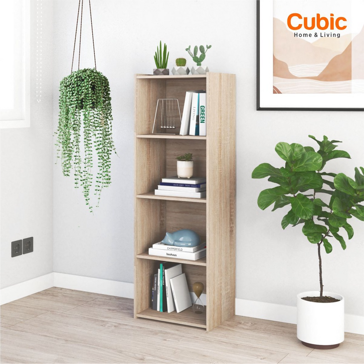 Rak buku minimalis Cubic Rak 4 Susun Minimalis / Lemari Buku Serbaguna / GENIO ORC 4 - Motif Kayu / Hijau