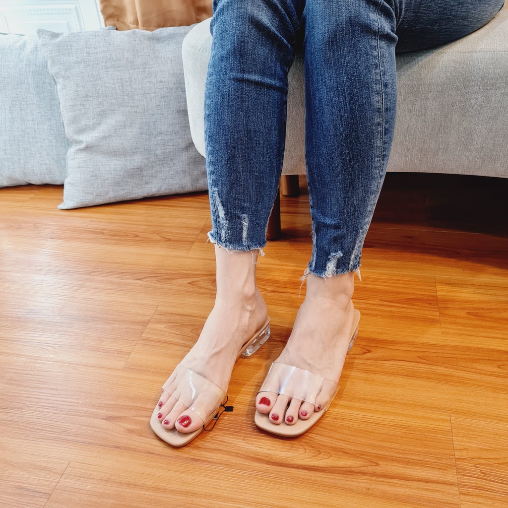 Sandal Flat Kaca Transparan Wanita Elegan 3cm Zr 636