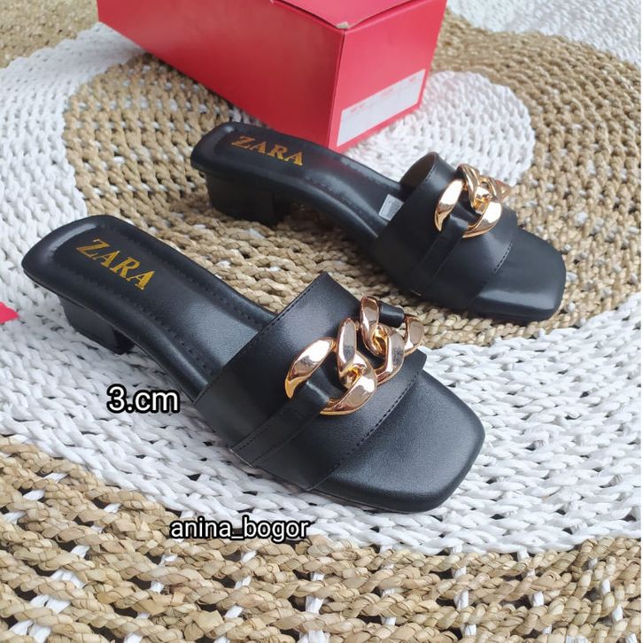 Sandal selop heel 3 cm ZR-012/Sandal selop heel wanita motif rantai/sandal nyaman di kaki karna menggunakan la-p-isan