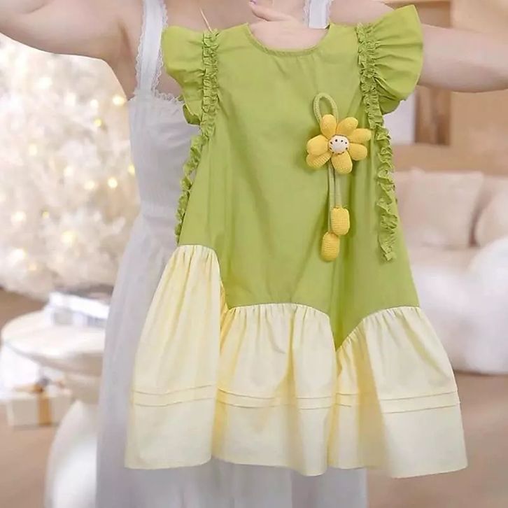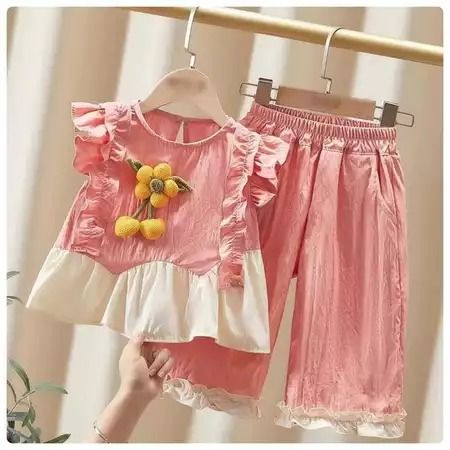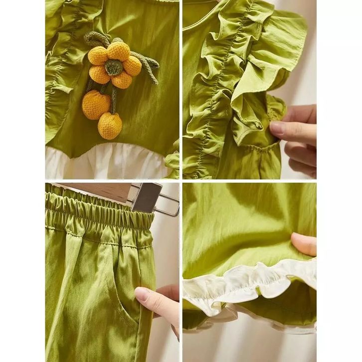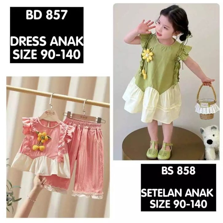 DRESS DAN SETELAN ANAK CEWEK VARIASI RUFFLE BUNGA TIMBUL SIZE 90-140